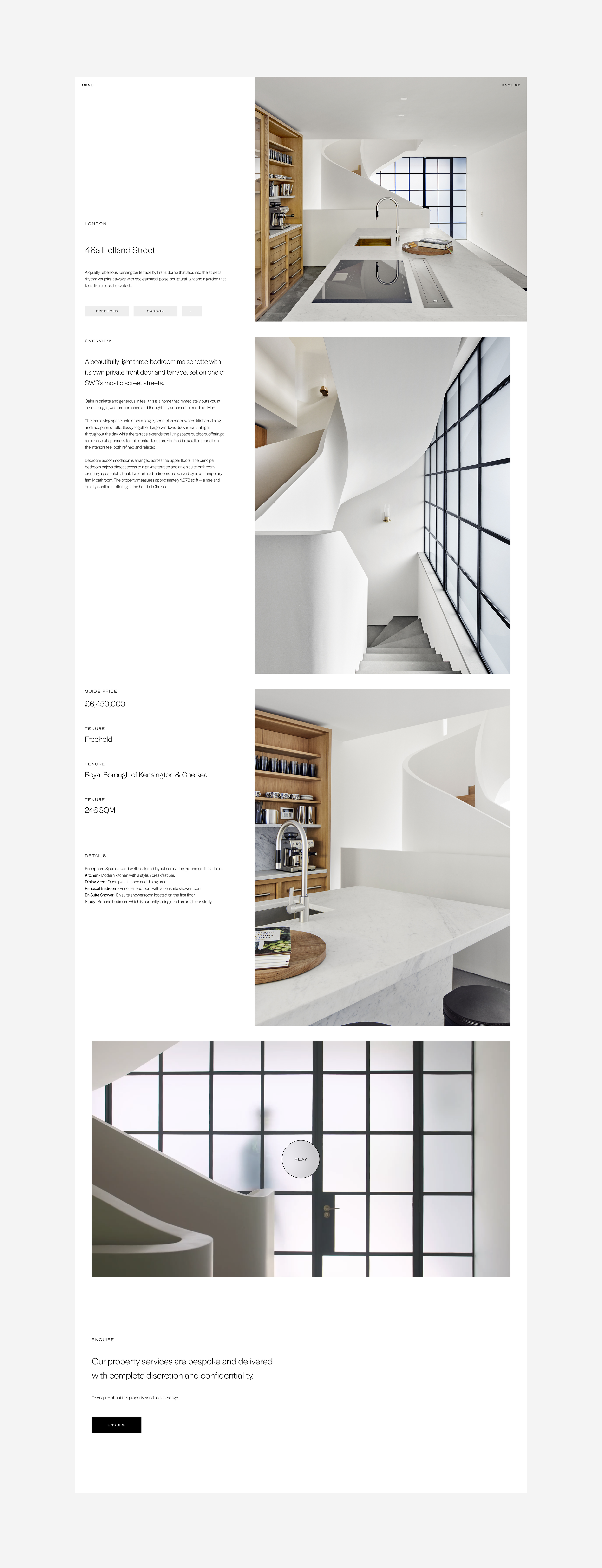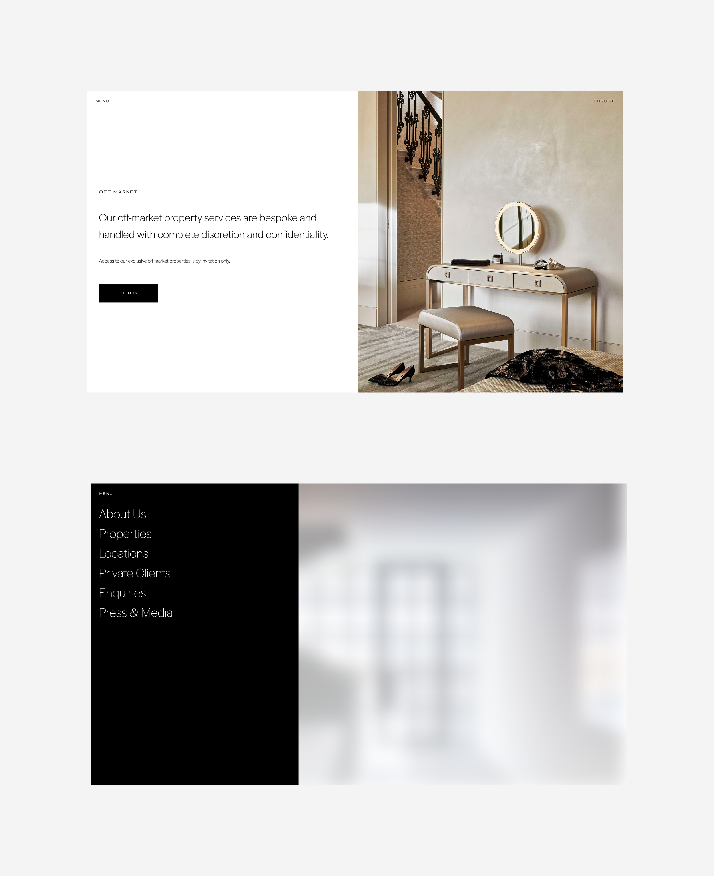 Extensive research into the upper echelons of the property market informed our approach. At this level, buyer behaviour shifts: visibility gives way to discretion, and overt signals of wealth are replaced by cues of trust, restraint, and expertise. Our insight was clear, design should not seek to persuade overtly, but operate as a gateway, sparking interest while enabling a more personal, high-touch method of engagement to follow.