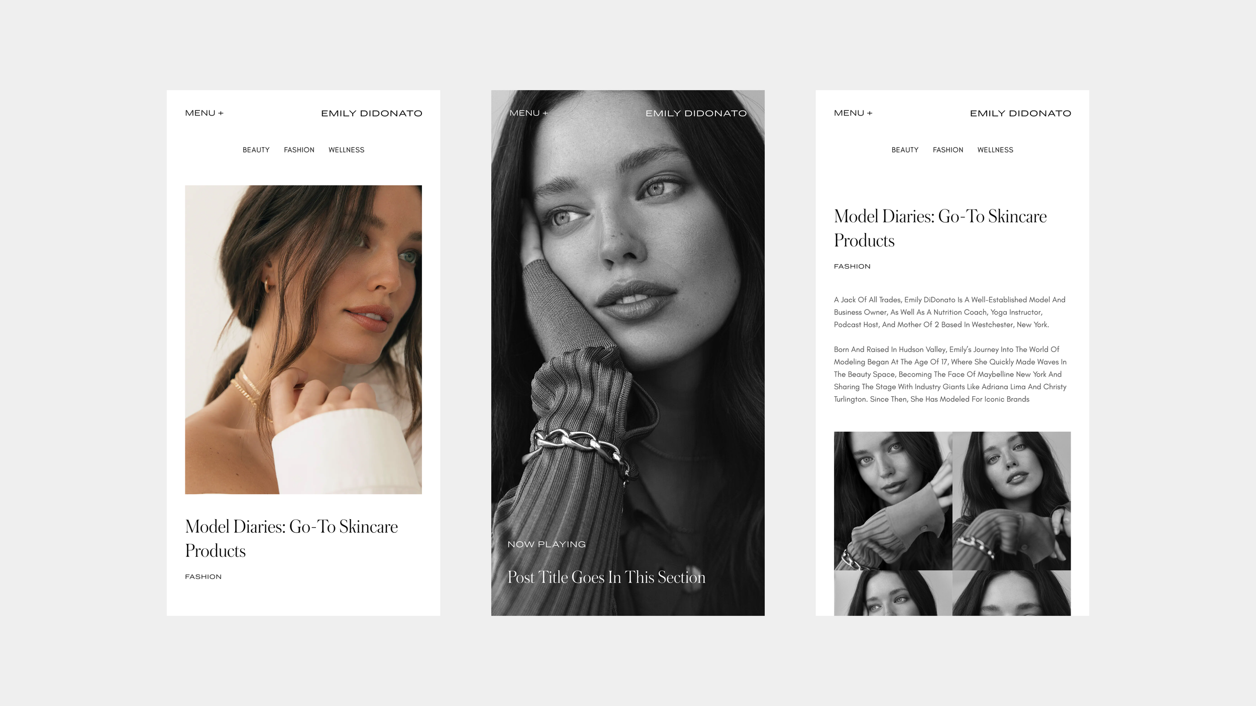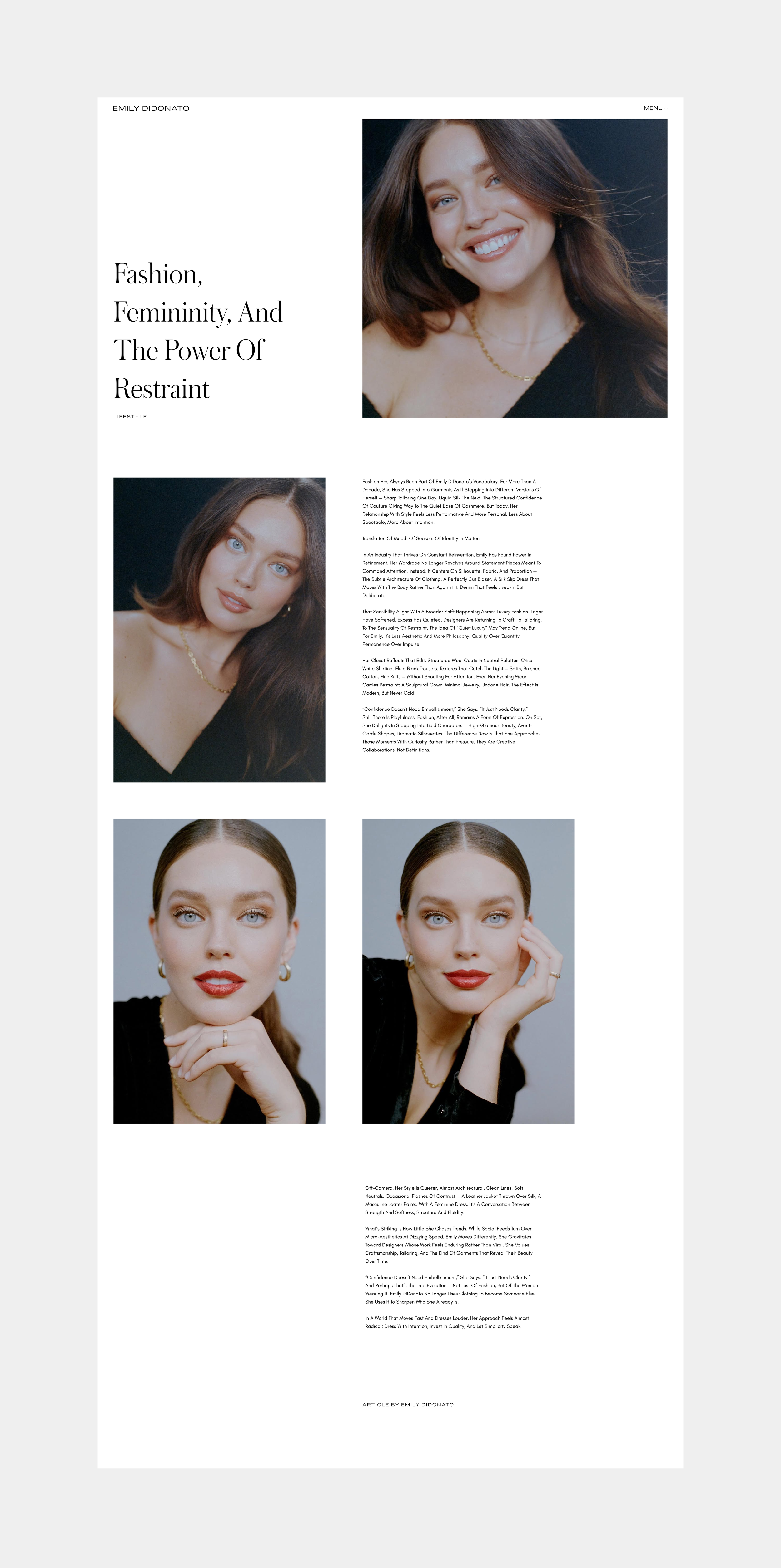 SC&CO were commissioned by supermodel and influencer Emily DiDonato to revitalise her existing website, creating a more refined and cohesive digital presence. With multiple content streams and platforms in play, the challenge was to bring clarity and consistency to an already established personal brand.