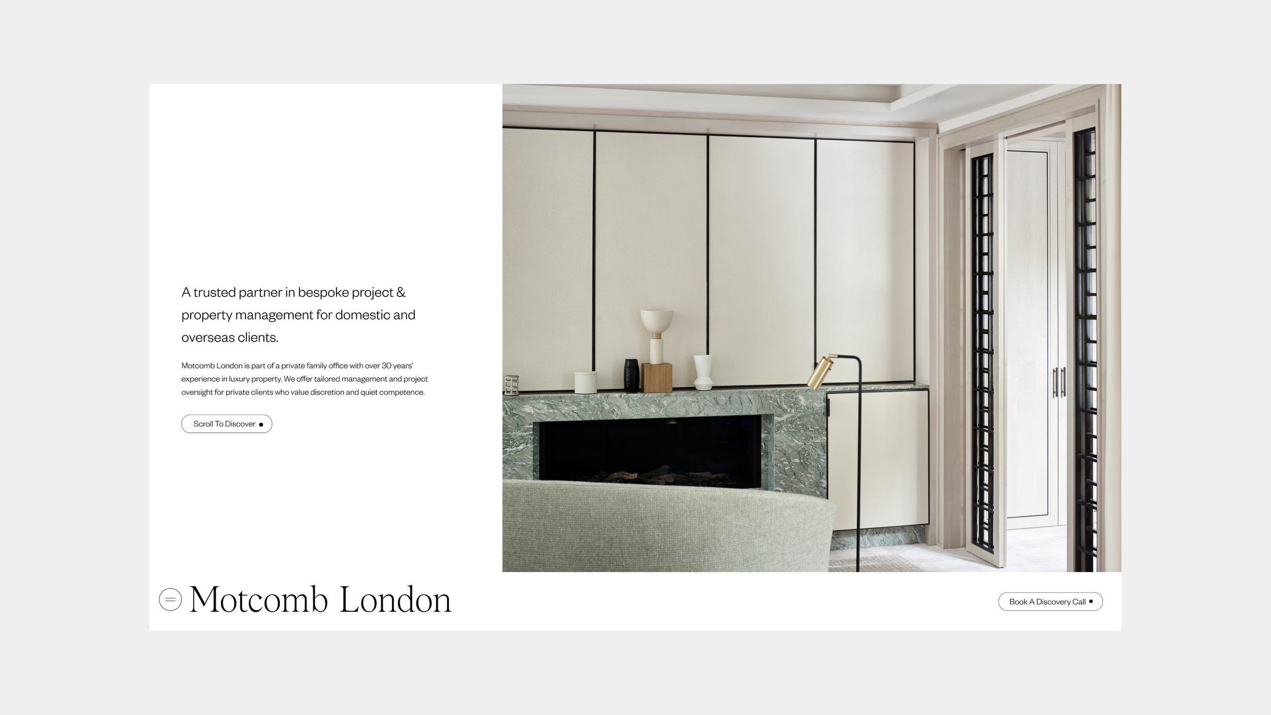 The website experience was intentionally calm, structured, and intuitive, prioritising clarity and confidence over promotional messaging. Content hierarchy and navigation were designed to mirror the firm’s approach to client service: methodical, thoughtful, and highly personalised. Rather than presenting Motcomb London as a service provider, the platform positioned the business as a trusted custodian of complex property and lifestyle projects.